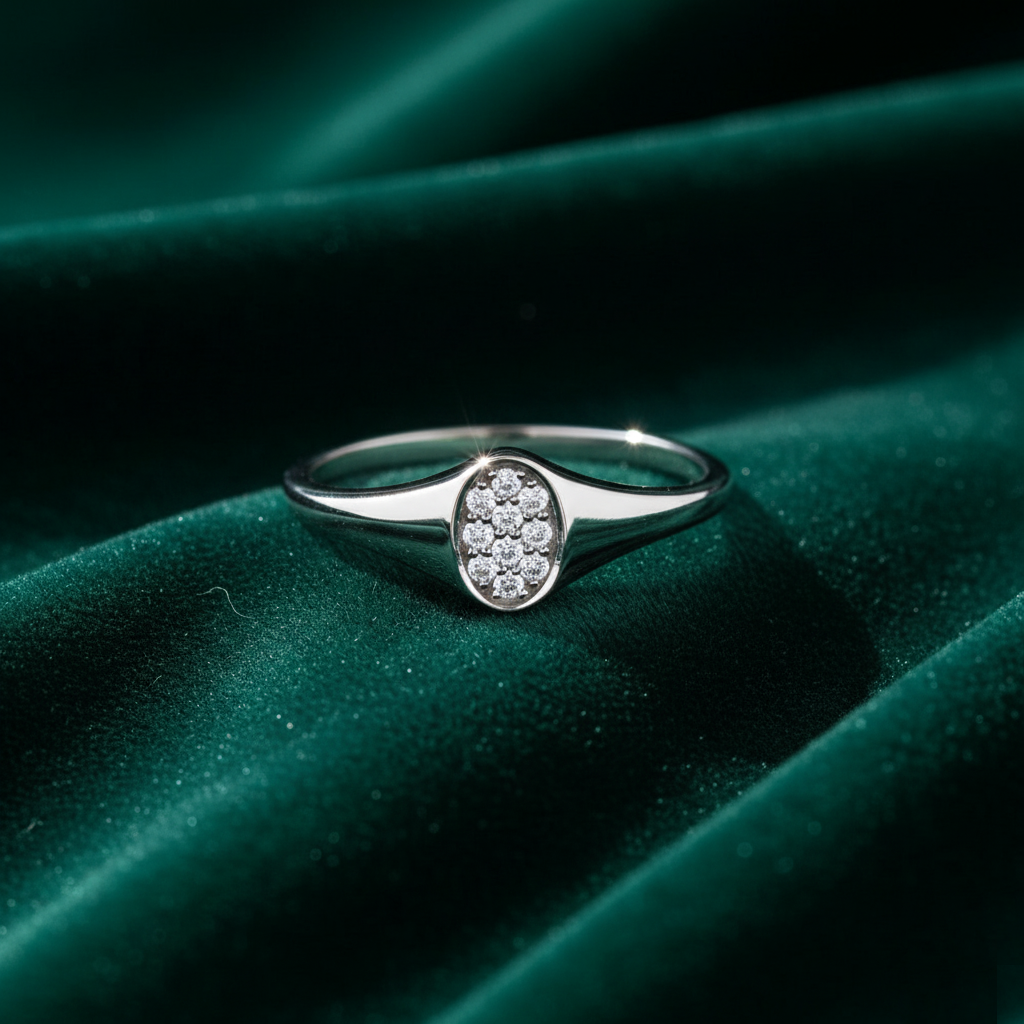 Oval Pavé Signet Ring | White Gold