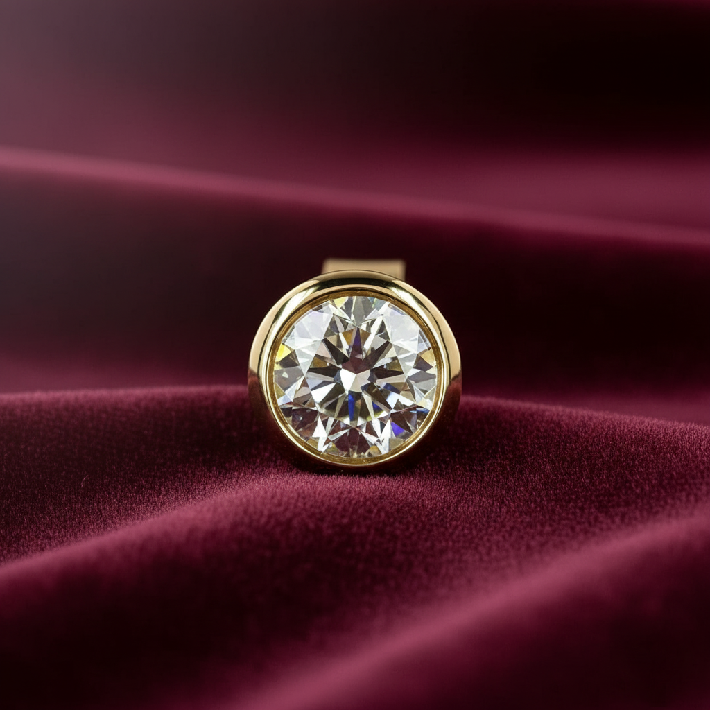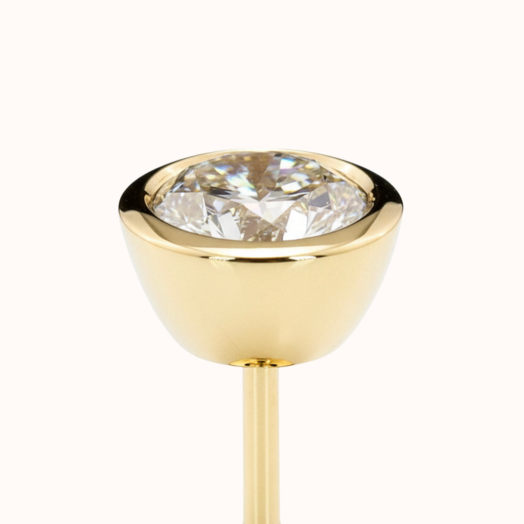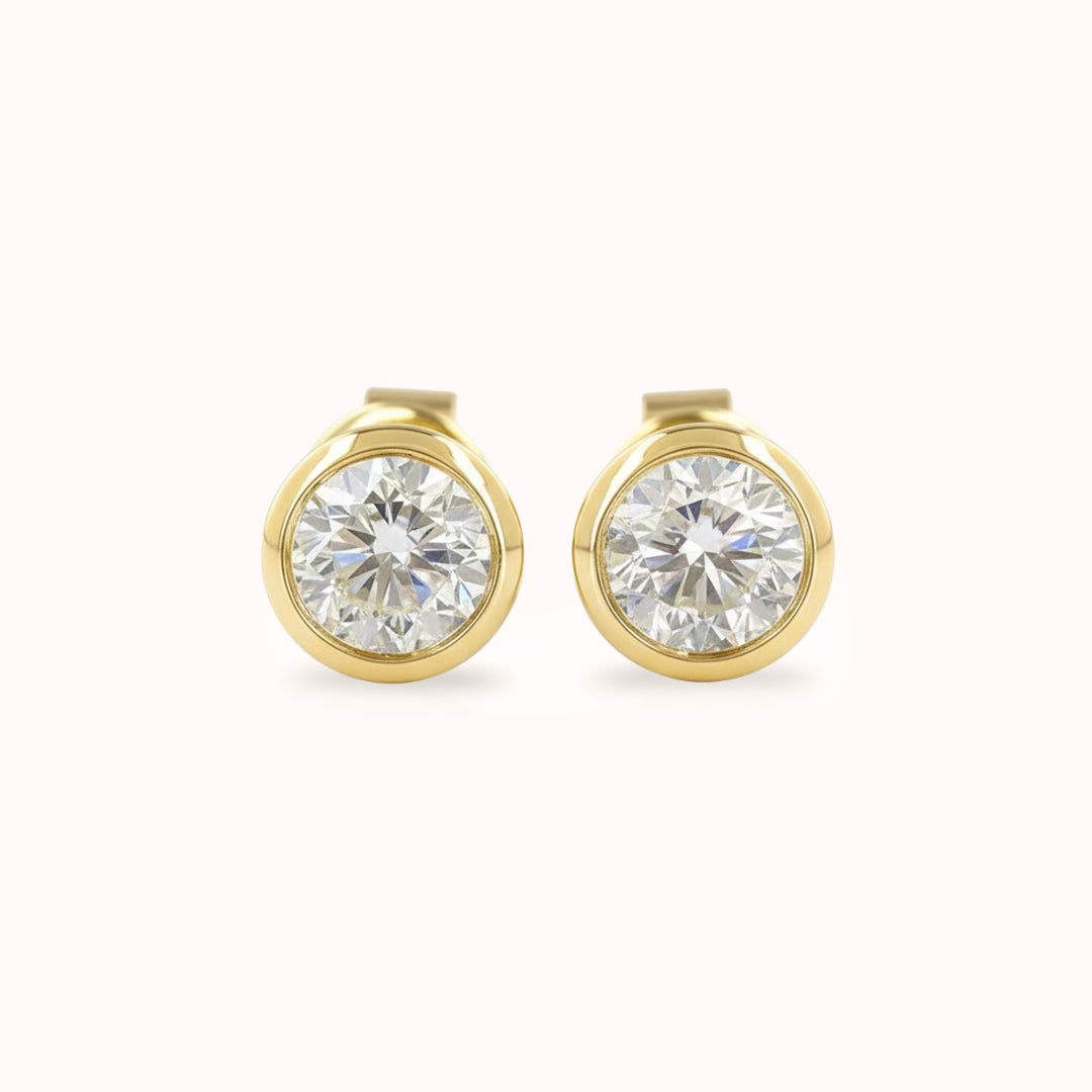 The Apex Studs are a study in balance — bold, architectural, and built to stay perfectly in place. Each earring features a round brilliant lab-grown diamond encased in a polished 14k gold bezel. The solid form gives structure; the open back allows light to move freely through every facet.