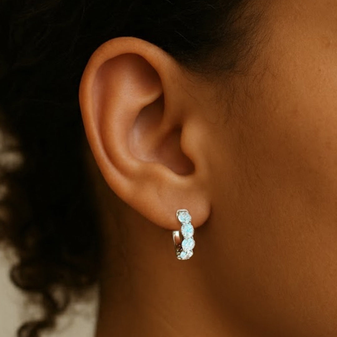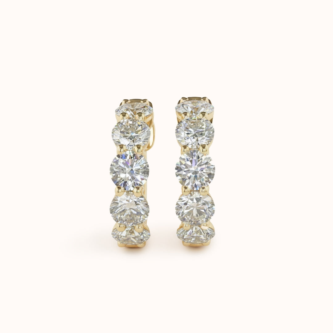 Experience brilliance in intimate form. Artfully crafted in 14k solid yellow or white gold, The Aura Huggies showcase 2cts of round lab-grown diamonds set in minimal prongs, giving the illusion that each stone floats on air. The open gallery beneath ensures light floods the diamonds from every angle—maximizing sparkle. Seamless yet secure hinge design lets them hug your ear with elegance, while the sculpted profile brings refined dimension without bulk.