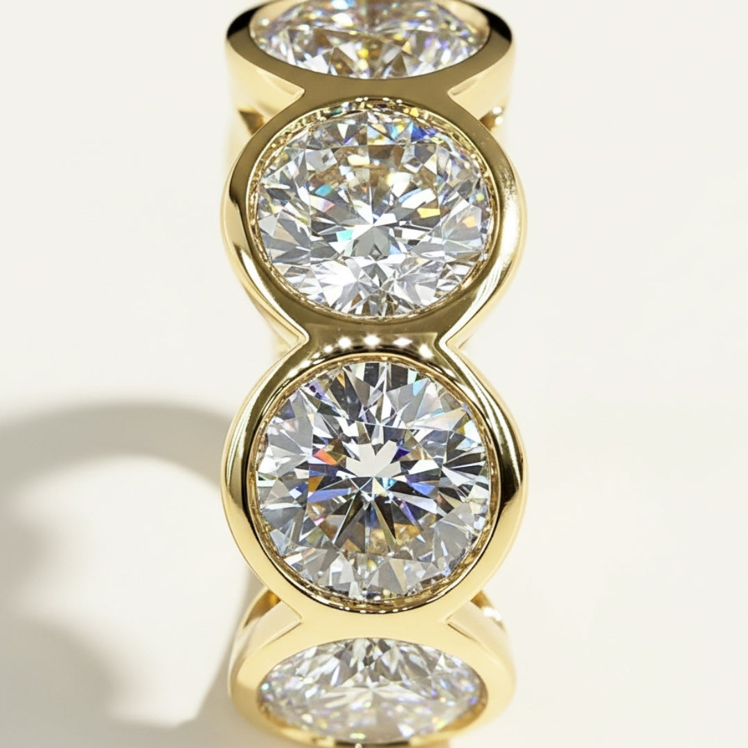 - Bezel setting with open backs for light flow and comfort