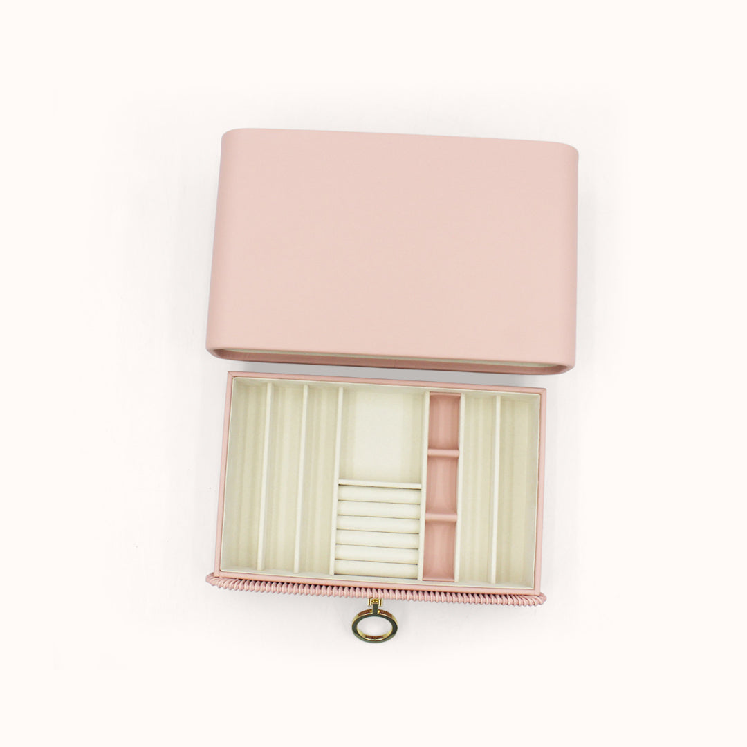 • Intimate interior layout: Soft velvet compartments, ring rolls, earring slots, and modular dividers—each angle considered, each compartment curated for your precious pieces.