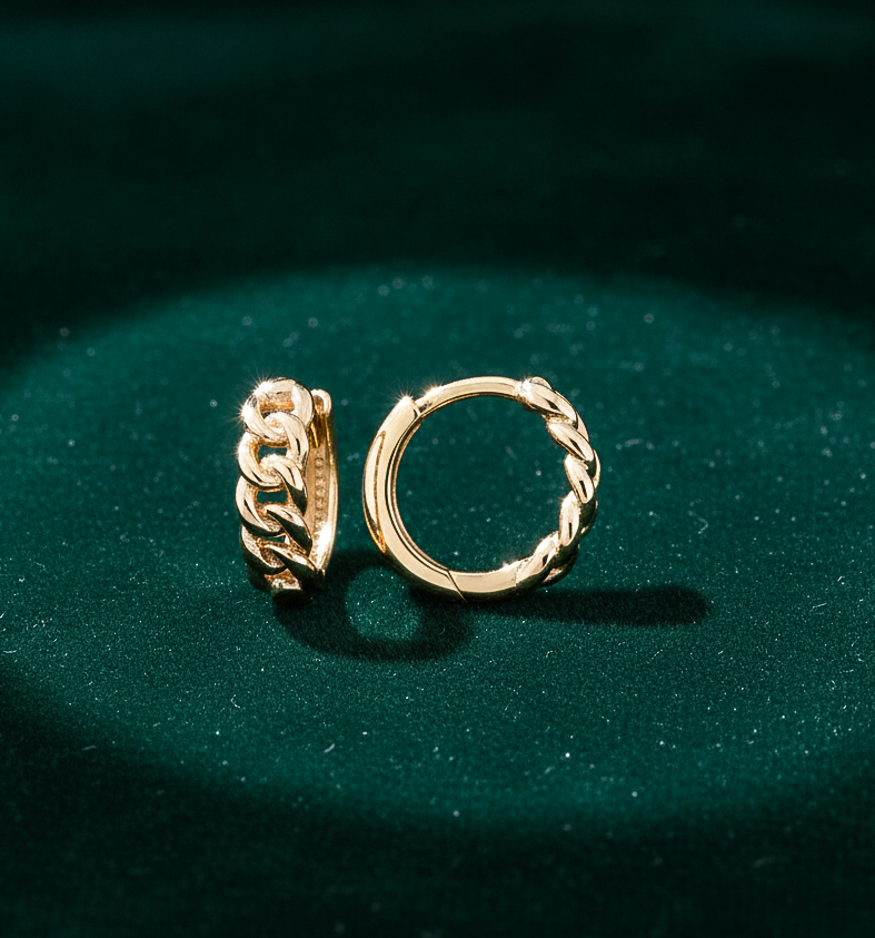 Not your average huggies. Our Curb Chain Huggies give minimalism a subtle twist, with a textured 14k solid gold chain-link design that’s clean, sculptural, and just a little rebellious. At 1.43 g per pair, they’re light enough for everyday wear, but bold enough to feel like a choice.