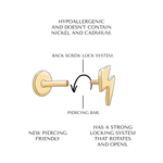 • Solid 14k gold — hypoallergenic, nickel-free, tarnish-proof.