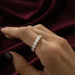 The Orbit Band (¾) is the softer, more wearable evolution of our full-circle icon. Two carats of precision-cut round lab-grown diamonds curve around a 14k gold band in a shared-prong setting that leaves just enough gold to frame the light. The open gallery lets every facet breathe, making the ring flash like a line of starlight.
