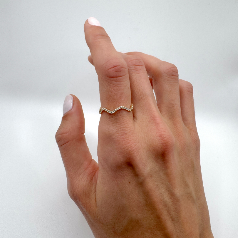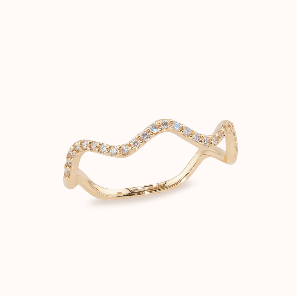 Go with the flow, and ride The Pavè Wave. Crafted in 14k solid gold and paved with a constellation of lab-grown diamonds, this undulating band symbolizes resilience, fluidity, and the beauty of surrendering to the moment. Whether you're stacking it or letting it shine solo, this ring is proof that the best things in life are never linear.