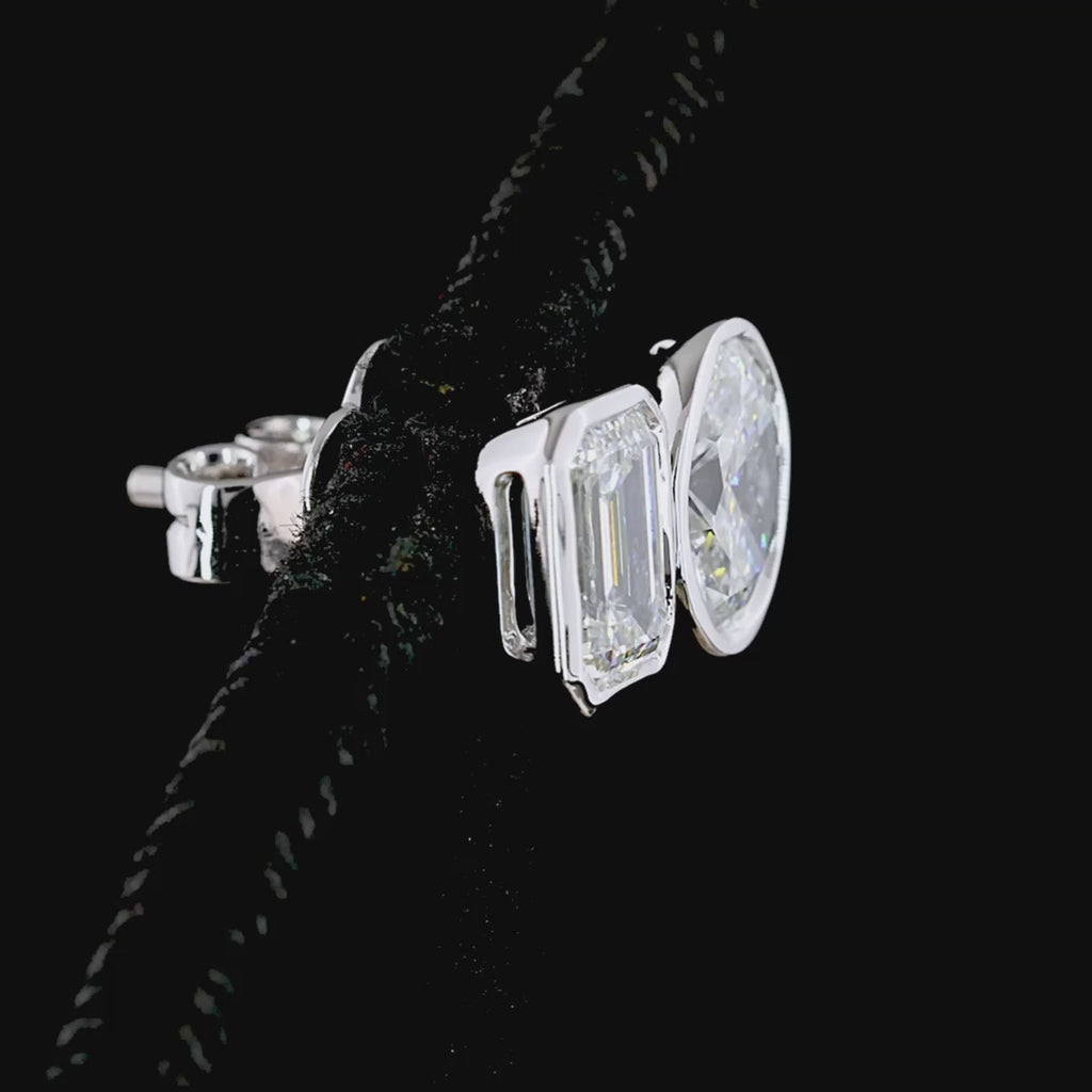 2.05 ct Toi et Moi Emerald & Oval Lab-Grown Diamond Stud Earrings in 14k Gold - Made To Order - Ships in 3 weeks.
