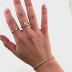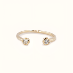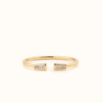 A little architecture for your everyday. The Arc Deco Cuff Ring tips its open silhouette with two tapered baguette diamonds facing across the band—sleek, symmetrical, and quietly dramatic. The low-profile bezels keep the lines crisp (and the stones protected), so it stacks effortlessly with your go-to bands or holds its own as a minimalist statement.