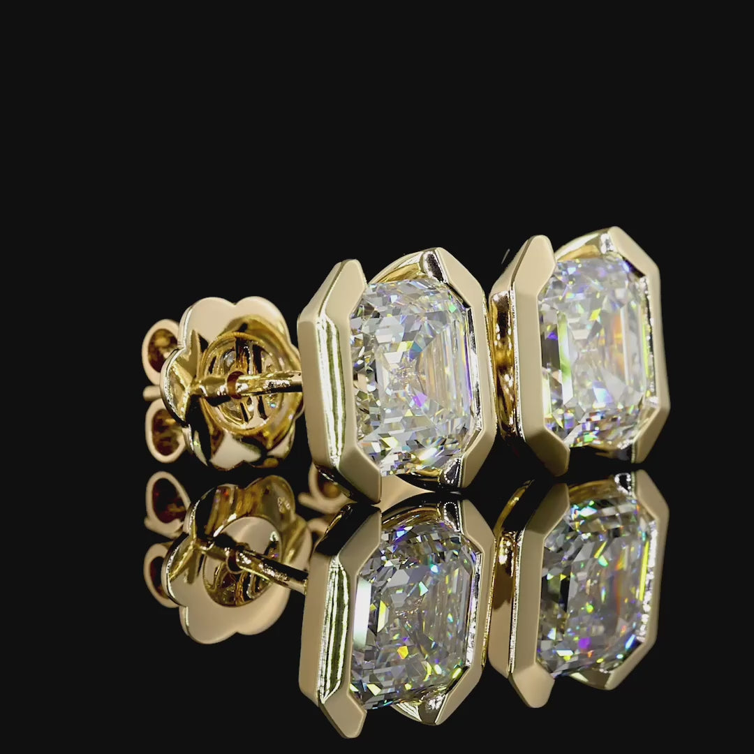The Vault Studs reimagine the classic diamond earring through Zayla’s lens: sharp, modern, and a little defiant. Each Asscher-cut lab-grown diamond — IGI-certified and precision-matched for cut and clarity — is wrapped in a half-bezel of solid 14k gold. The open sides leave the step-cut facets exposed, catching light like glass and shadow in equal measure.